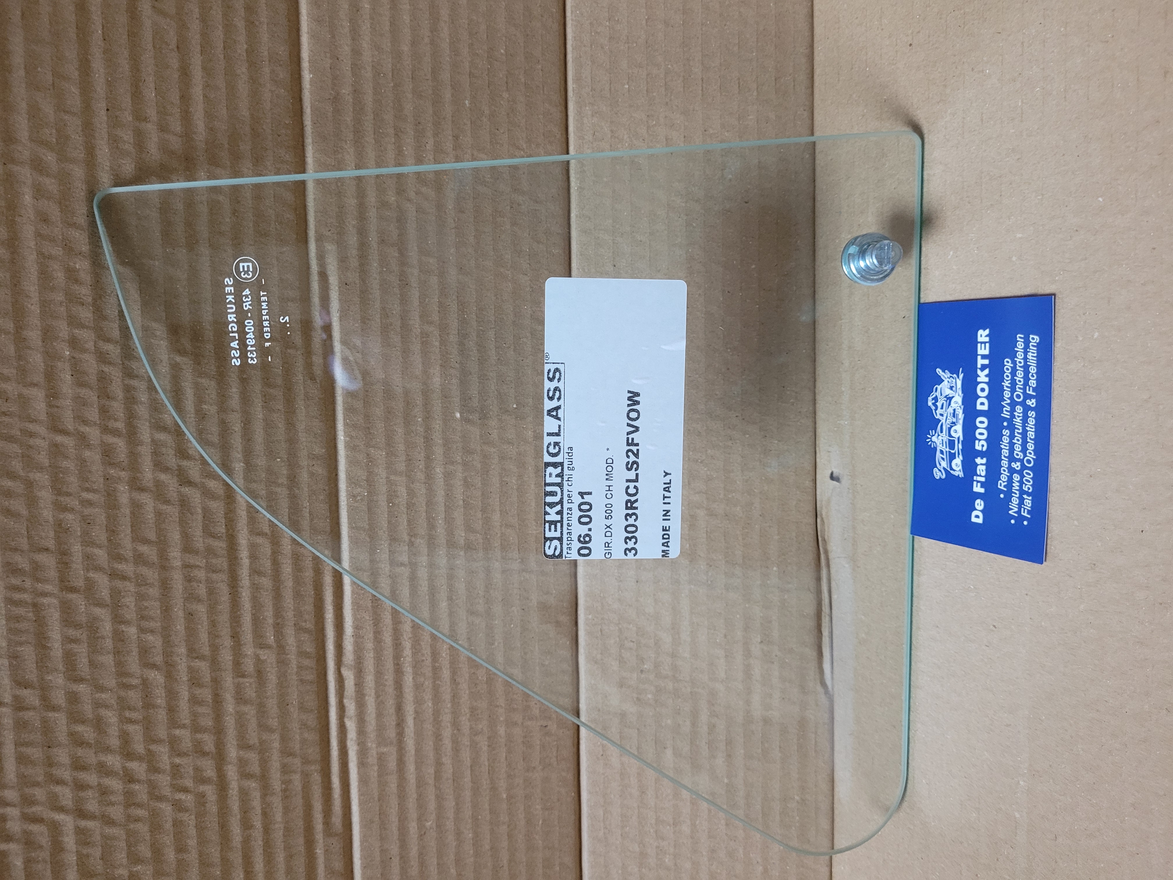» Driehoeksruitje met modificatie op de ruit orgineel fiat500 Italië, afbeelding is rechts paasagierskant .Bij bestelling aangeven welke zijde!